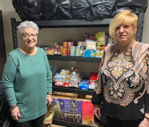 Pictured above are Outreach Coordinators Karen Danes (left) and Lisa Simko (right) in front of some of the food awaiting distribution.